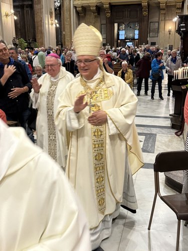 In der Kirche S. Andrea della Valle feierten wir dann zum Abschluss einen feierlichen Gottesdienst. Musikalisch erneut gestaltet von unserem Wallfahrtschor, mit Liedern, die uns die gesamte Reise bereits begleiteten. Bischof Wiesemann resümierte in seiner Predigt: „Wie reich beschenkt wurden wir mit diesen Tagen, tiefgehende Erfahrungen, die uns wieder neue Hoffnungskraft des Glaubens gegeben haben und uns zu Pilgerinnen und Pilger der Hoffnung machen. Wie die Kirche lebt, wie der Glaube lebt, das durften wir in diesen Tagen in Rom, als Ort der Kirche der ganzen Welt, erleben.“